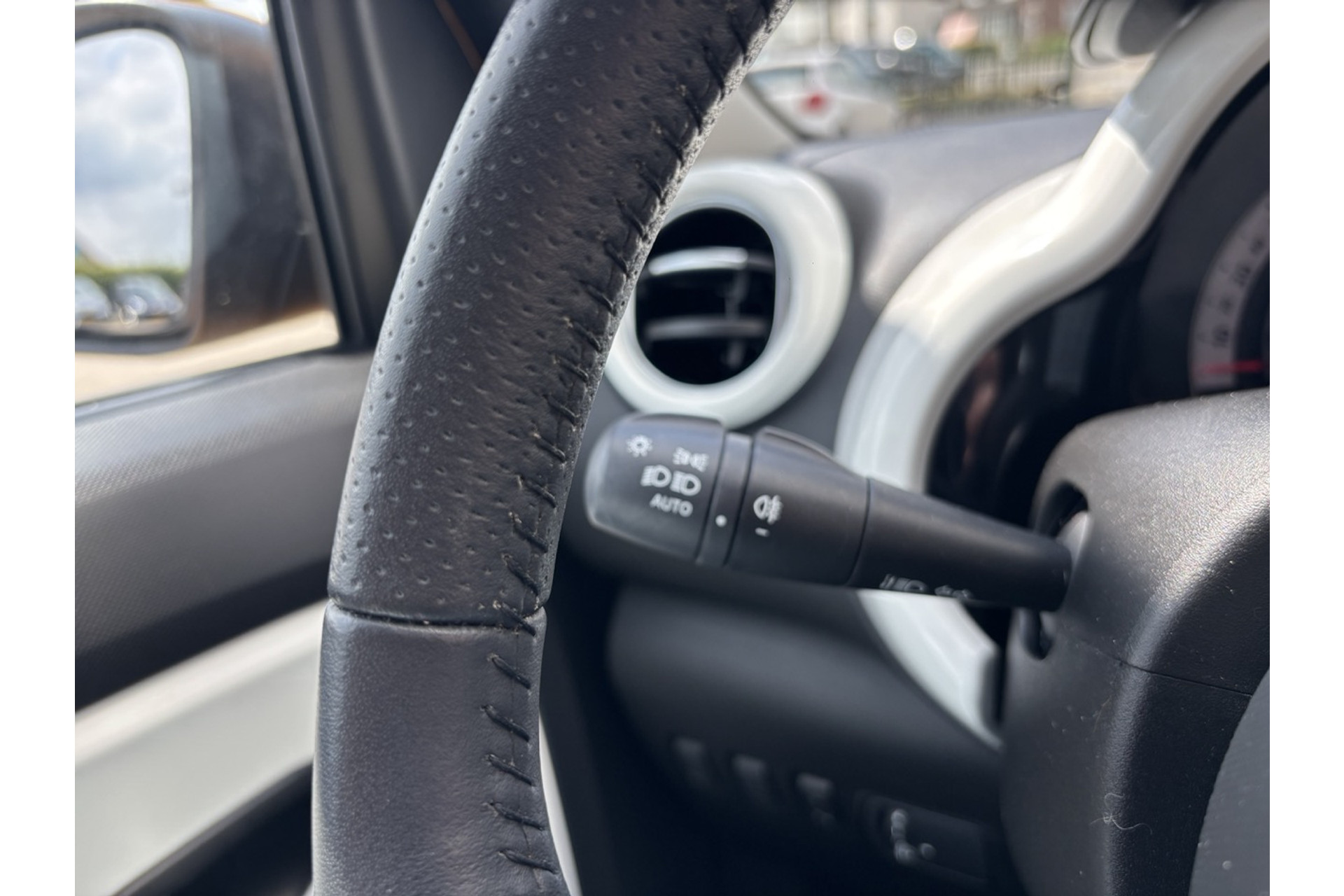 - Omlijsting van ventilatieopeningen, versnellingspook en ring in stuurwiel in wit