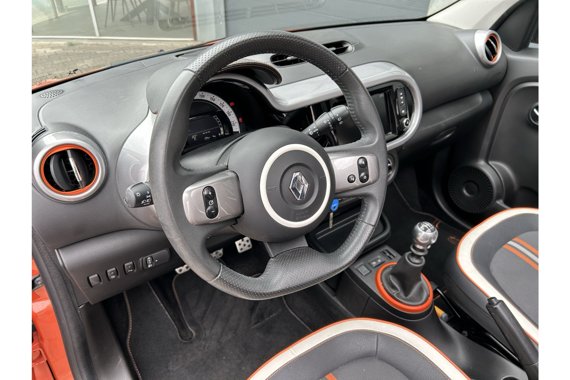 - Omlijsting van ventilatieopeningen, versnellingspook in orange