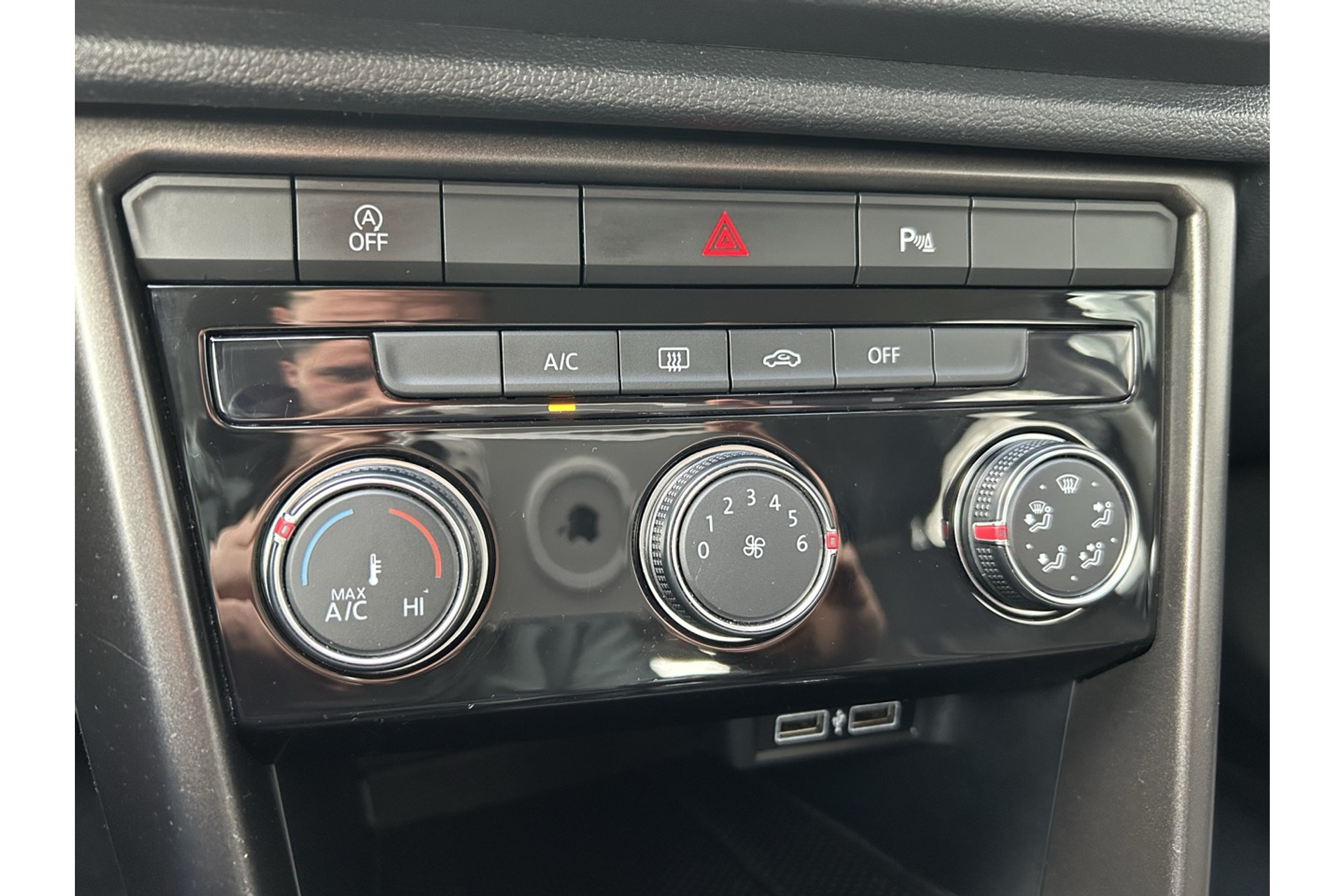 - Middenarmsteun met opbergvak voor, twee uitstroomopeningen voor de achterpassagiers en twee bekerhouders achter