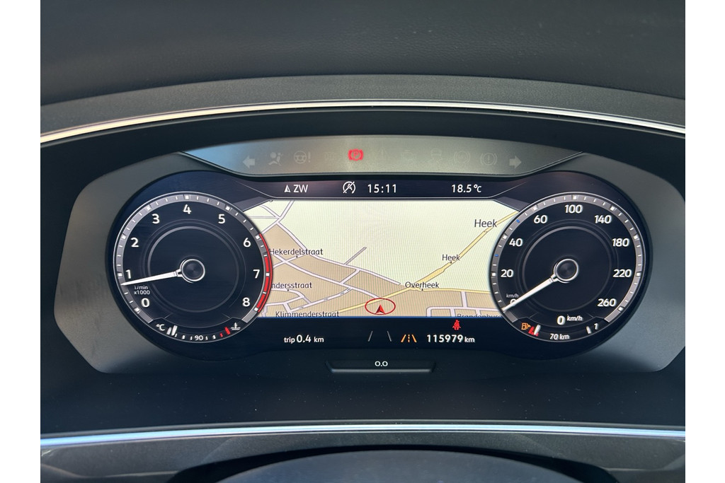 - Instrumentenpaneel met elektronische snelheidsmeter, kilometer- en ritafstandteller, toerenteller, weergave van buitentemperatuur en indicatie versleten remblokken