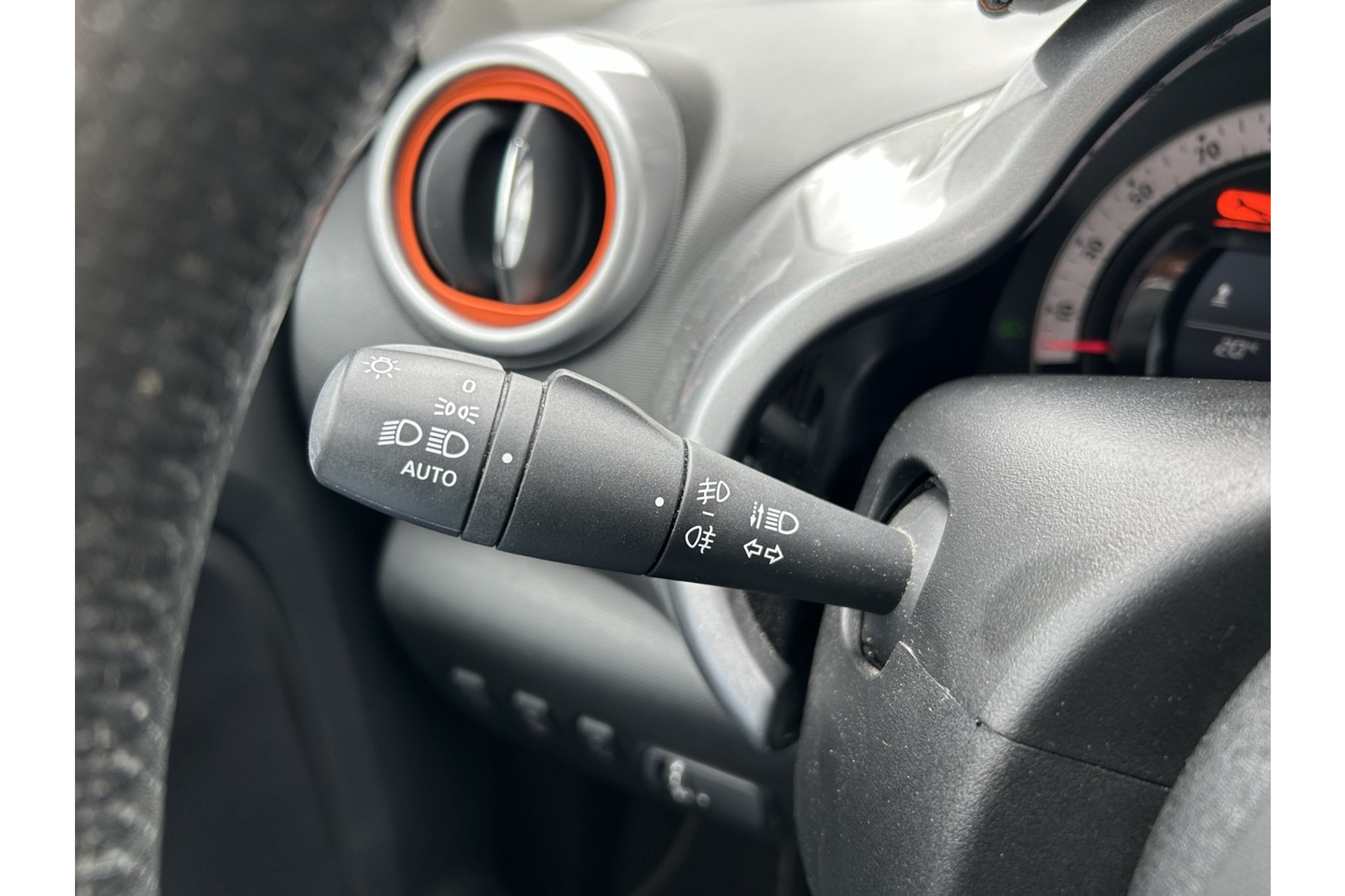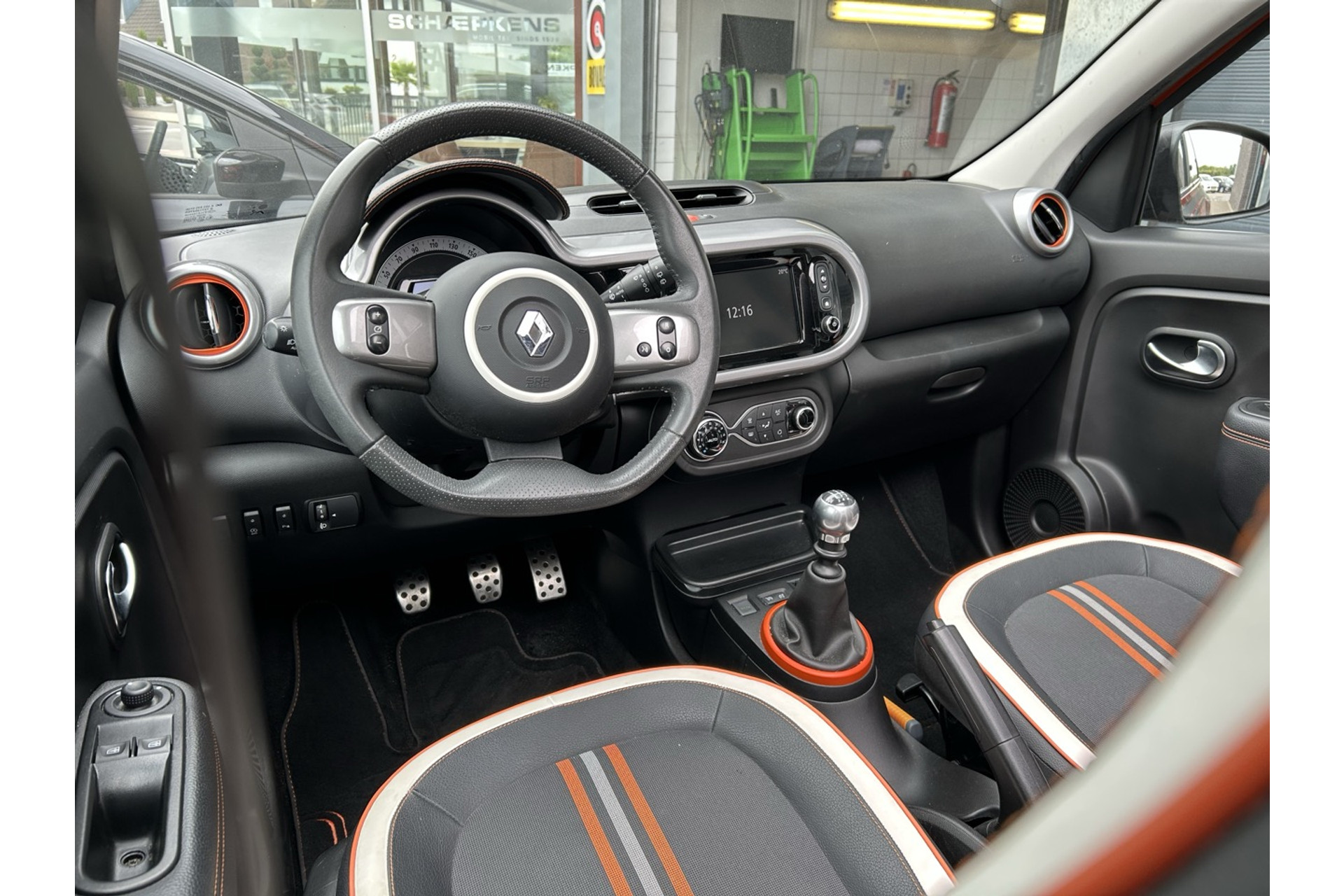 - Omlijsting van ventilatieopeningen, versnellingspook in orange