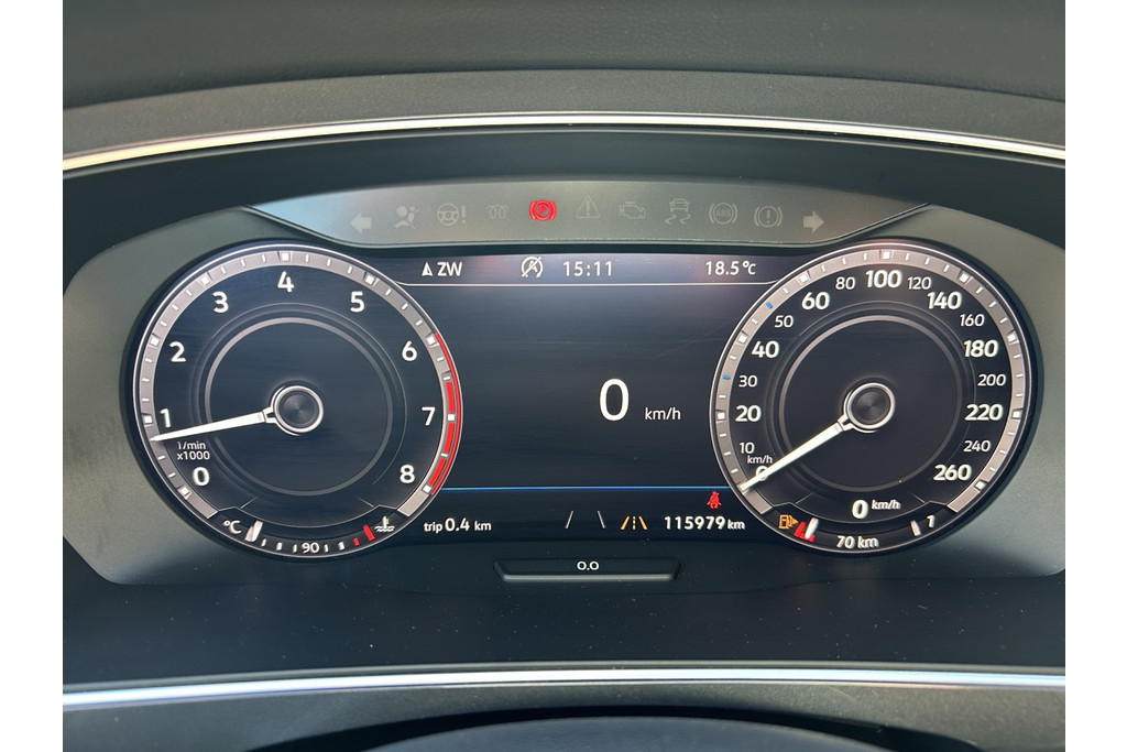 - Instrumentenpaneel met elektronische snelheidsmeter, kilometer- en ritafstandteller, toerenteller, weergave van buitentemperatuur en indicatie versleten remblokken